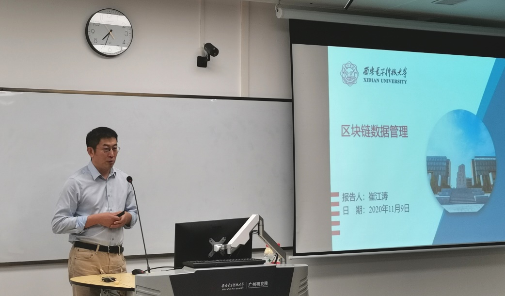 (通讯员 陈龙)为落实教育部和学校有关研究生培养的相关要求,加强计科院在穗研究生学业规划,11月9日晚,beat365官方网站执行院长崔江涛教授赴广州研究院,在黄埔区海丝知识中心B5栋201教室为80余名研究生做了题为“区块链数据管理”的学业导航报告,广州研究院执行院长沈八中、党委副书记刘涛等参加活动。