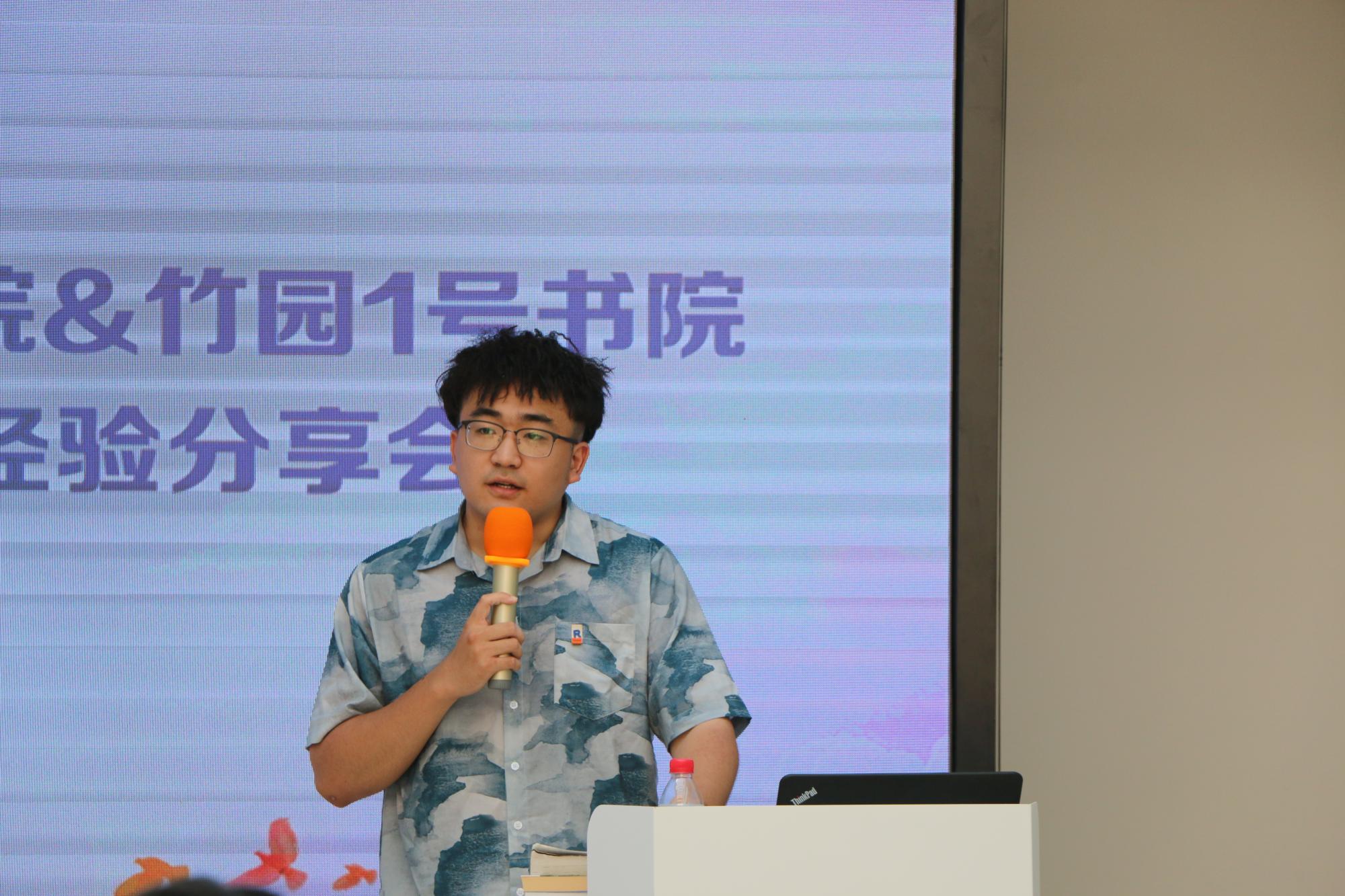 随后,来自beat365官方网站2017级优秀毕业生以书为媒,以己为鉴向竹园1号书院大一学弟学妹送上经验分享与美好祝福。2017级雷泽宇谈到,很高兴能和学弟学妹们分享自己大学四年的经历和感想,看到学弟学妹们仿佛看到了四年前的自己,希望学弟学妹们能在今天几位优秀的同学分享的感染下奋起向上,珍惜大学的美好时光,合理安排时间,在平时的生活中不仅完成好学业,也能保持阅读的习惯,多运动,在大学结识一生难忘的朋友!