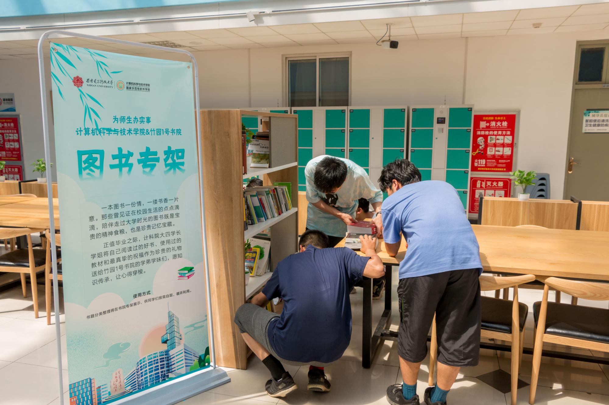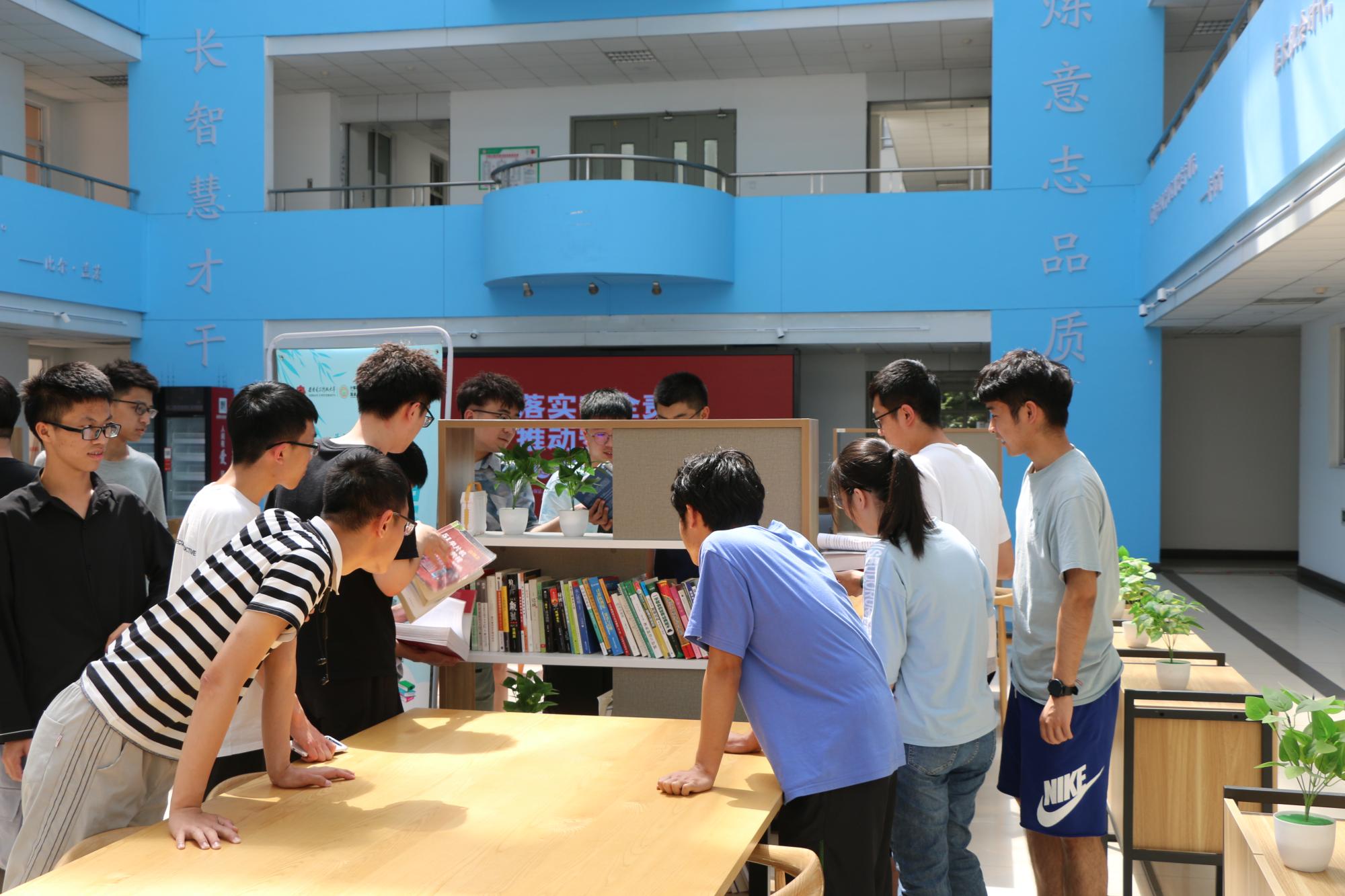 beat365官方网站联动竹园1号书院将所赠书籍分类整理在书院大厅打造“图书专架”展示,供同学们按需自取,循环利用。活动结束后,大一同学们纷纷驻步围看图书展架,挑选自己所需要的书籍,将学长学姐的积累与祝福传承。