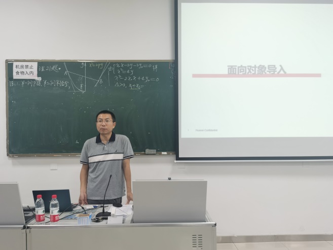 7月6日,第一次课程,企业专家和相关负责老师很早就到达授课教室,即西电南校区计算机基础实验教学中心的EIII207机房,检查实验环境和教学环境,保证课程能够顺利实施。下午两点,课程正式开始,万波教授首先介绍了参与本门课程授课的四位华为资深软件专家,并代表学院表示欢迎和感谢,之后阐明了该课程开设的重要意义,最后鼓励所有选课学生在未来两周认真学习,必能有所收获。