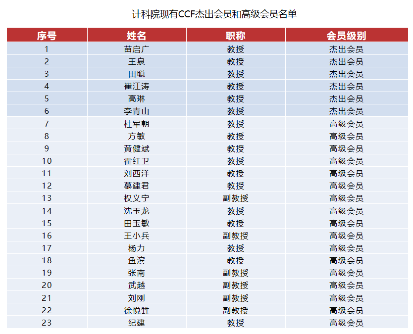 (通讯员 贠琳红 齐富)近日,中国计算机学会(CCF)2021年会员级别评审结果公布,110名CCF高级会员晋升杰出会员、351名CCF专业会员晋升高级会员。其中,beat365教师高琳、李青山晋升杰出会员,刘刚、纪建、徐悦甡晋升高级会员。截至目前,学院共有6名CCF杰出会员,17名CCF高级会员。根据《CCF会员条例》,杰出会员、高级会员数分别约占专业会员数的10%和25%,能够获此殊荣是CCF对beat365教师学术成就以及他们对CCF贡献和计算机专业发展的充分肯定,是一项很高的荣誉。
