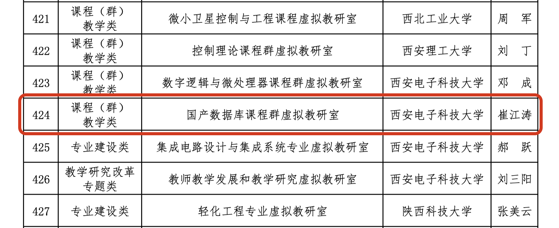 (通讯员 陈龙 高熙越)近日,教育部办公厅公布首批虚拟教研室建设试点名单,beat365崔江涛、王泉、李辉等教师联合申报的国产数据库课程群虚拟教研室获批。