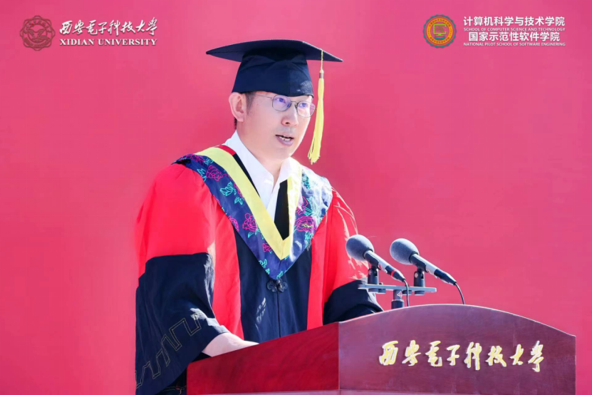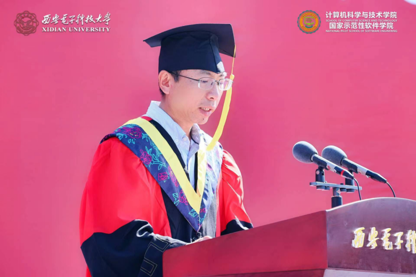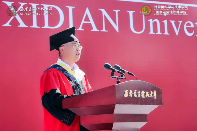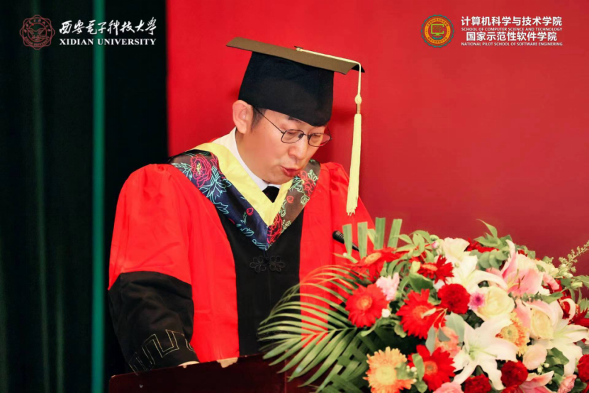 学院执行院长崔江涛教授深情寄语2022届毕业生,他谈到2018级同学以青春“小我”战疫情大考,逆风而行,主动担当;关键时刻,学生党员挺身而出,更多的同学受到感染积极加入一线志愿者工作,彰显“无我”初心。18级同学与重组后的beat365官方网站共成长,与历届西电人一起不懈奋斗,共筑院校荣光。他对同学们提出三点希望,第一是在两个百年的历史交汇时期“定位坐标”,立大志、明大德、成大才、担大任,强化终身学习能力,提升核心竞争力,把个人发展与国家命运相结合,将个人理想融入到中华民族的事业中;第二是在互联网的时代浪潮中坚守“慎独克己”,在信息洪流中严守计算机伦理,守护自己的精神家园,弘扬社会正能量;第三是在百年未有之大变局中乘风破浪,深刻认识到我国所面临的内外环境,认识到计算机行业发展面临的挑战,以解决实际问题为目标和突破口,知难而上,向“卡脖子”技术问题发起冲击,投身新一轮数字革命的热潮中。最后,崔江涛寄语毕业生,以青春之“小我”,践行“无我”初心,书写时代之“大我”,在各自的岗位上不断努力,把青春奉献给国家和民族,让青春闪耀光彩。
