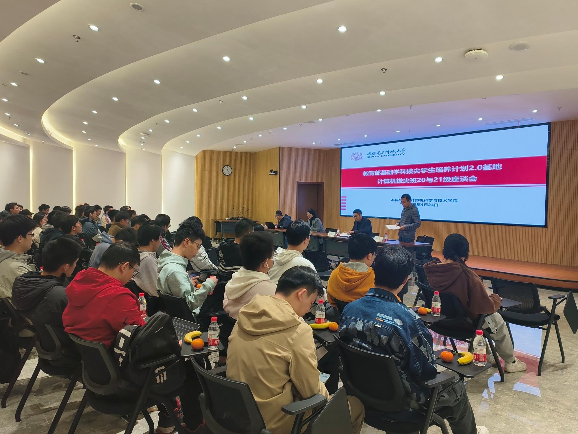 (通讯员 王小兵)为贯彻落实“全面提高人才自主培养质量,着力造就拔尖创新人才”二十大精神,根据学校第十三次党代会拔尖创新人才培养工作部署,4月24日下午4点,计算机拔尖班2020级与2021级学生座谈会在南校区网安大楼会议中心103报告厅召开。本科生院副处长杨敏,beat365官方网站执行院长崔江涛,副院长万波,计算机拔尖班负责人王小兵参加。本次座谈会由beat365官方网站与本科生院共同举办,旨在深入调研拔尖班特性需求,全面落实立德树人根本任务,推进学校拔尖创新人才培养工作,提高人才自主培养质量,打造“不设天花板”的拔尖人才培养空间。