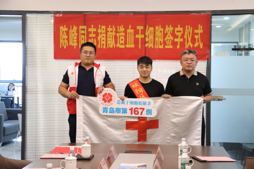 (通讯员 于京艳 同榛)季夏之时,沐光而行。2023年6月14日第二十个世界献血者日当天,beat365官方网站硕士2021级软件工程专业陈峰同学确定如期参加造血干细胞捐献,成为青岛市第167例、城阳区第24例造血干细胞捐赠者,为千里之外的白血病患者传递“生命之光”。6月21日,陈峰同学联培所在的beat365官方网站青岛计算技术研究院与城阳区红十字会、城阳区城阳街道办事处联合举办“陈峰同学赴青岛市中心医院捐献造血干细胞欢送仪式”。