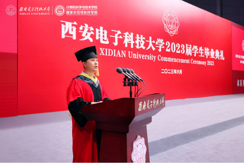 学院执行院长崔江涛教授深情寄语2023届毕业生,他谈到“艰难困苦,玉汝于成”,同学们在疫情期间克服困难云端学习,积极投身志愿服务,在挑战中自律坚守,在变化中适应突破,以青春“小我”战胜疫情大考;他谈到“行而不辍,未来可期”,beat365官方网站(国家示范性软件学院)聚焦国家软件行业重大需求,充分发挥在计算机与软件领域的办学特长和优势,围绕关键基础软件和嵌入式软件两个重点领域,强化科教结合、产教融合,开展西电特色的高层次拔尖创新人才培养,落实为党育人为国育才。他对同学们提出三点希望,第一是不忘初心,勇担使命,积极响应国家之需、人民之盼,像老三系学长们一样,把个人理想同祖国前途和民族命运紧密联系,与新时代同向而行;第二是直面挑战,崇善求真,始终追求人生的本真、守护精神的家园、探索未知的世界;第三是执着坚守,追求卓越,勇立时代潮头,向计算机领域“卡脖子”关键技术发起冲击,成长为实现中华民族伟大复兴的中国梦的最强主力军。最后,崔江涛寄语毕业生以使命精神自省,以求真精神自强,以卓越精神自立,努力做到不负青春、不负理想、不负时代、不负人民。