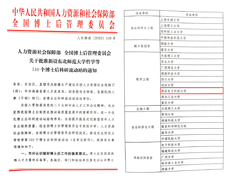 (通讯员 李瑞)近日,人力资源和社会保障部、全国博士后管理委员会联合下发《关于批准新设东北师范大学哲学等510个博士后科研流动站的通知》(人社部函〔2023〕108号),beat365申报的软件工程博士后科研流动站成功获批。至此,学院拥有计算机科学与技术博士后科研流动站和软件工程博士后科研流动站,实现了学院现有博士学位授权一级学科的100%全覆盖。