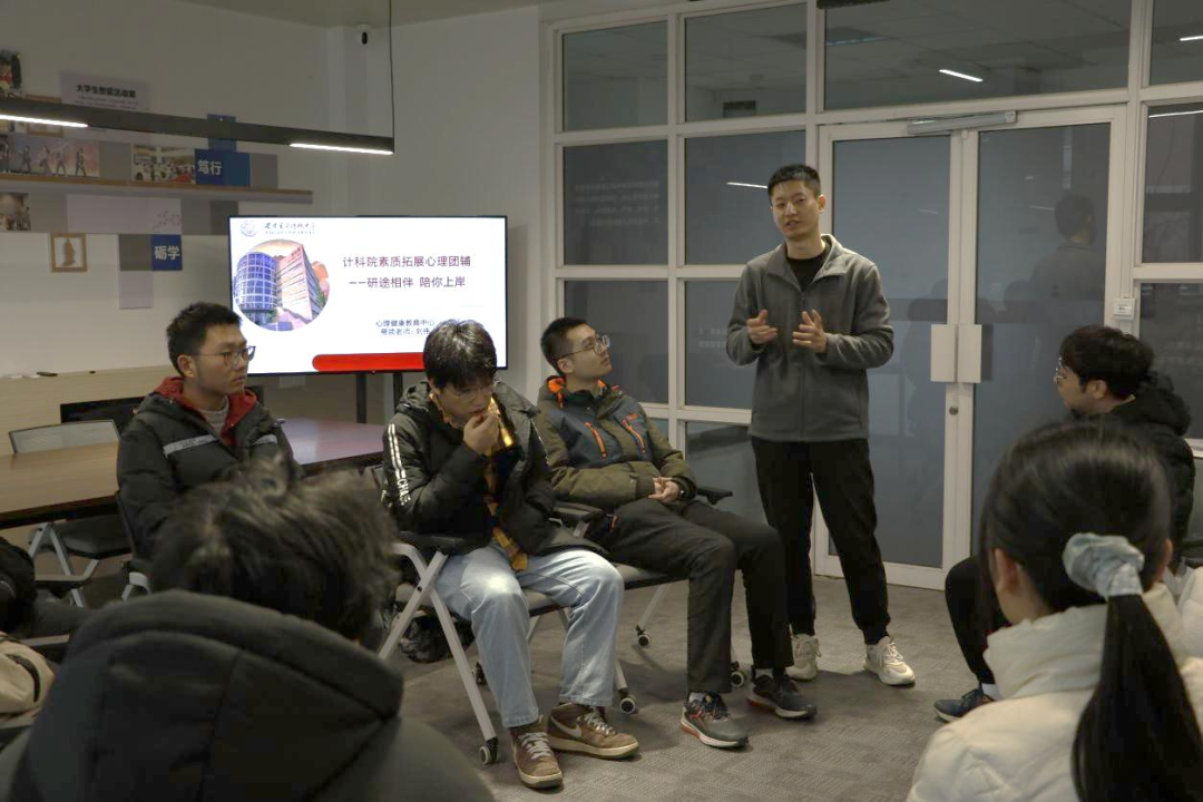 为帮助考研学子坚定备考信心,缓解备考压力,学院联合心理健康教育中心在12月13日组织开展“研途相伴,集体团辅缓压力”活动。心理健康教育中心刘伟老师受邀主持活动,部分考研同学主动报名参加。活动开始前,2023级硕士研究生李卓贤、孙彧斌分享了考研路上的宝贵经验。团体辅导从情绪卡牌、解手链、祝福卡片等破冰游戏开始,在相互熟悉后,刘伟老师鼓励同学们分享近期备考过程中的情绪和心态的改变。随着现场气氛的逐渐活跃,同学们开始畅所欲言,勇敢表达自我感受,在疏解自身压力的同时也为身边的同学加油助力。