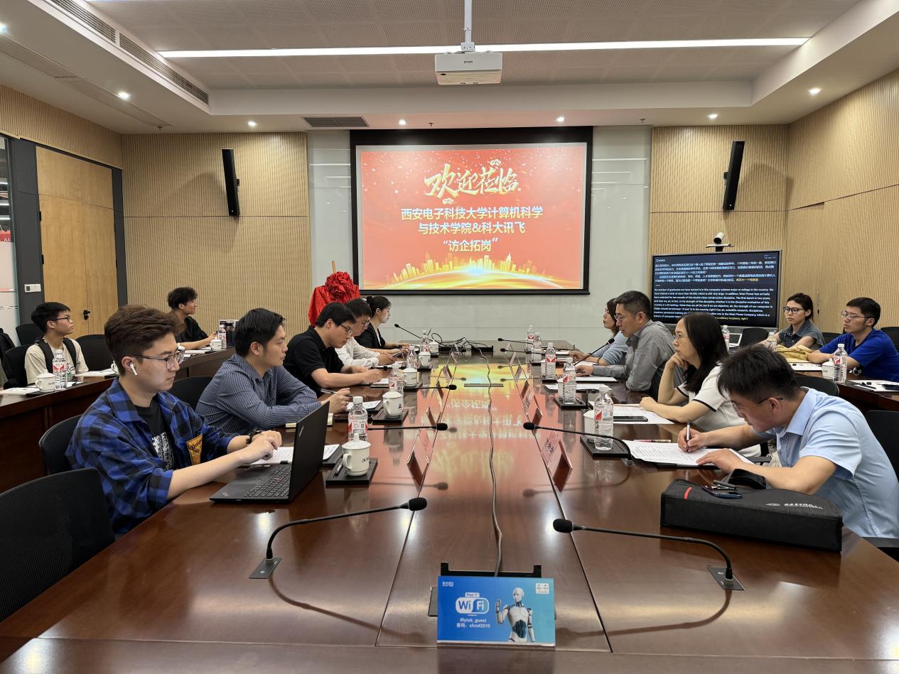 参观结束后,双方就深化校企合作,协同加强科研攻关、智能教育、就业育人等进行座谈交流。科大讯飞西安研究院副院长来意哲对beat365官方网站师生一行的到访交流表示热烈的欢迎。崔江涛就学院历史沿革、专业设置、学科建设、科研师资、人才培养优势等方面做了简要介绍。他表示,科大讯飞作为高校科研成果转化的企业典范,在人工智能和计算机领域都有着卓越的成绩和贡献。学院高度重视产学研融合发展,一直持续深化与对口企业的科研联合攻关,希望下一步与科大讯飞在重大科研项目、创新人才培养等方面建立深度合作。双方还就下一步开展在AI+教育领域的合作进行了深入交流。