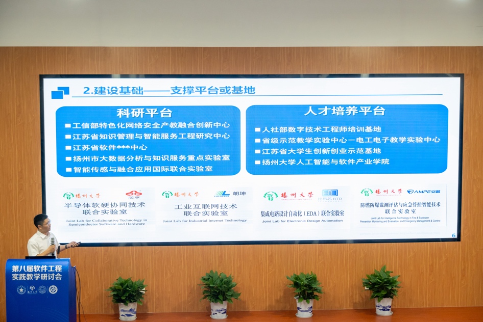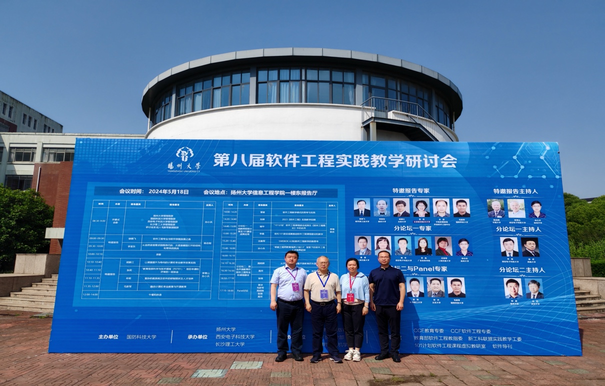 在软件定义一切和大模型时代,特色化示范性软件学院建设、软件工程专业建设、课程教学和人才培养面临着新的机遇和挑战,为了更好的促进软件工程教育教学方法和实践教学成果的交流和分享,推动软件工程专业建设和教学改革,提升软件人才的培养质量。2024年5月18日,由国防科技大学主办,扬州大学、beat365官方网站和长沙理工大学联合承办的第八届软件工程实践教学研讨会在扬州大学信息工程学院(人工智能学院)东报告厅举行。CCF计算机教育专委会副主任、国防科技大学毛新军教授,扬州大学信息工程学院(人工智能学院)院长孙小兵教授,beat365官方网站党委书记、软件工程学科负责人李青山教授担任会议联合主席。