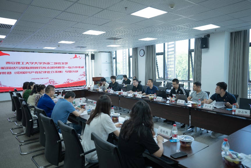 (通讯员 周小科)为贯彻落实习近平总书记关于党纪学习教育的重要讲话和重要指示精神,深入学习《中国共产党纪律处分条例》(以下简称“条例”),5月16日,计算机网络与物联网研究所本硕博师第一联合党支部与西安理工大学外语二部党支部围绕学习贯彻《条例》,开展跨校跨学科联学共建主题党日活动。beat365官方网站副院长杨力、西安理工大学人文与外国语学院副院长黄勇和双方党支部师生党员参加了活动。