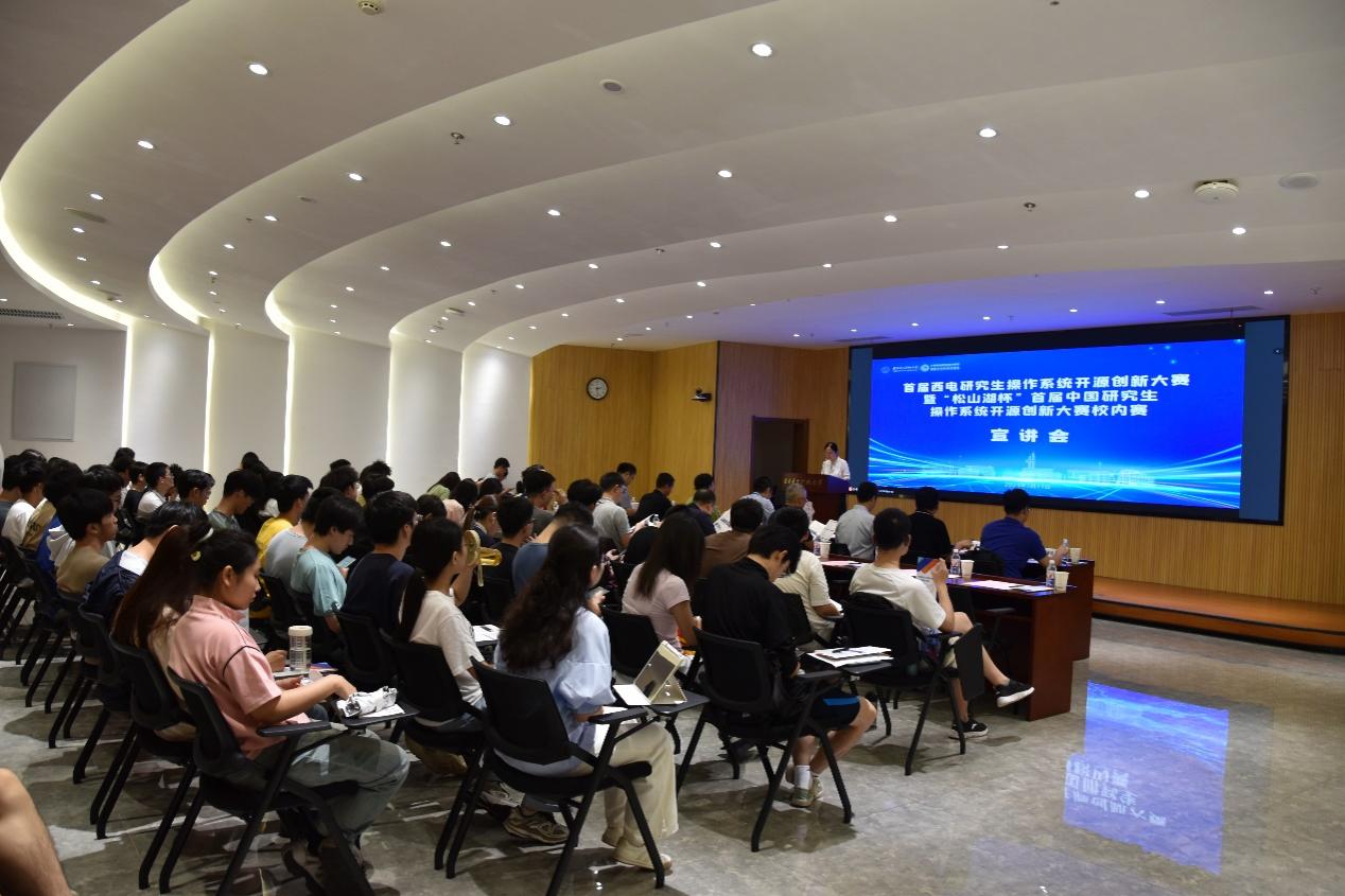 (通讯员 寇大为)7月11日下午,首届西电研究生操作系统开源创新大赛暨“松山湖杯”首届中国研究生操作系统开源创新大赛校内赛宣讲会在南校区会议中心103报告厅和线上平台同步举行。学校党委研究生工作部部长张君博、beat365官方网站党委书记李青山为活动致辞,大赛执委会委员、国防科技大学王静做大赛赛事介绍,校内赛事承办单位beat365官方网站副院长杨力做校内赛介绍。开源社区专家董金光、李卓珩受邀到现场结合赛题开展宣讲,开源社区专家程书意、麻付强、朱云成受邀进行线上宣讲。华为西安研究所人力资源部高级招聘经理曹耀东、beat365官方网站党委副书记黄成龙出席了宣讲会,校内一百多位师生通过线上线下方式参加宣讲会。活动由beat365官方网站党委副书记张莹莹主持。