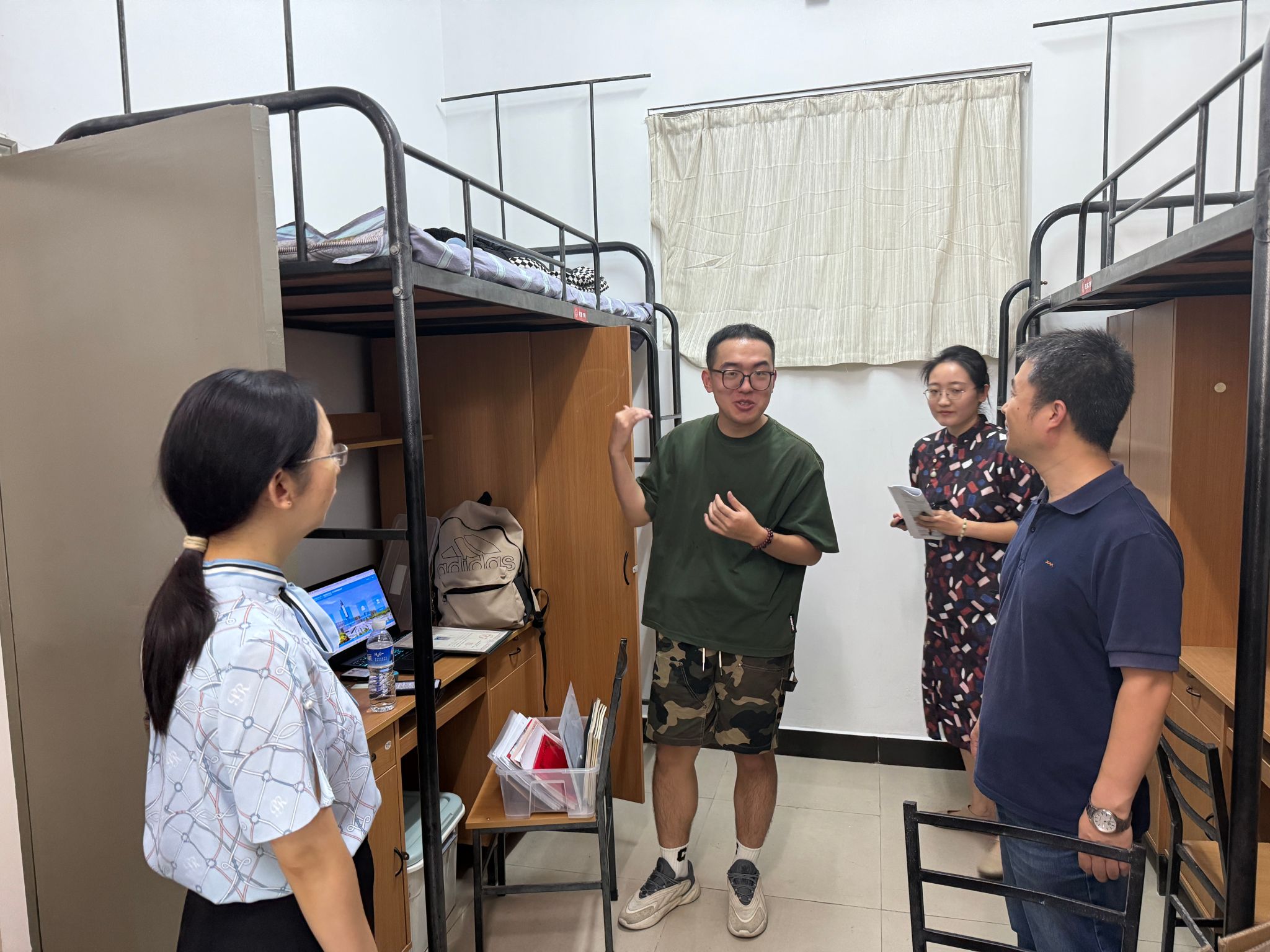 学院领导对研究生迎新工作高度重视。学院党委书记李青山、党委副书记张莹莹、副院长杨力也来到报到处,了解迎新工作进展,与志愿者和报到的新生亲切交流。学院领导一行还来到丁香15号楼研究生新生公寓,看望新生和家长,关心同学们报到入学是否顺利,勉励同学们脚踏实地、静心学习。
