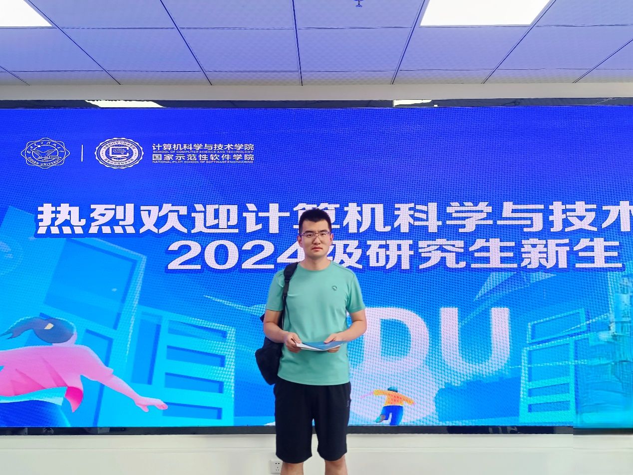 早上7点54分,学院便迎来了2024级第一位硕士研究生新生张持生,随着“咔嚓”一声,志愿者同学为他记录下了这一特别的时刻。别具匠心的布景,迎新现场打卡氛围瞬间拉满,这是专属于新生们的仪式感。“与来自全国各地的同学们相遇,让我非常期待在这里开启崭新生活,希望能在计科大家庭不断学习进步,收获成长、实现理想”张持生谈到。