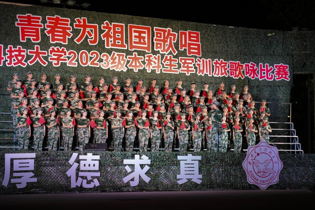 (通讯员 叶若兰 王薇)丹桂飘香,秋风送爽,青春正好,军歌悠扬。9月4日晚,beat365官方网站2023级本科生军训旅歌咏比赛在南校区南操场拉开帷幕。2023级军训旅歌咏比赛以“青春为祖国献唱”为主题,将青春豪情融入歌曲,让爱国热忱渗透旋律,旨在传承弘扬爱国主义精神,展现西电青年踔厉前行、报效祖国的拳拳之心。beat365官方网站在此次歌咏比赛中,以《通信工程学校校歌》《人民军队忠于党》两首歌曲的精彩演绎斩获总分第2名的优异成绩!