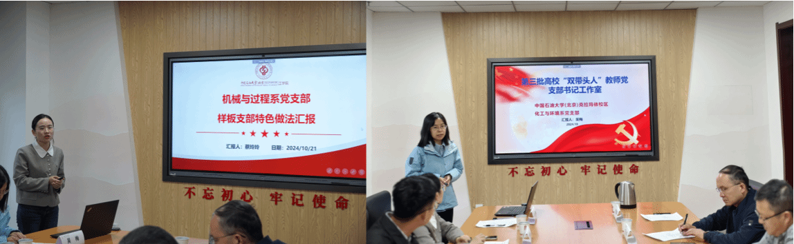 全国高校“双带头人”教师党支部书记工作室负责人、中石大克校区工学院化工与环境系党支部书记吴梅详细介绍了党支部“三学习、两强化、两助力、两服务”工作模式,通过具体实例说明了党支部服务国家能源重大战略和新疆八大产业集群建设需要,培养高层次、应用型工程实践人才。全国党建工作样板支部负责人、中石大克校区工学院机械与过程系党支部书记蔡玲玲分享了落实党支部建设“七个有力”的特色做法和党建赋能服务地方发展、促进课程思政、人才队伍建设等方面的生动实践。