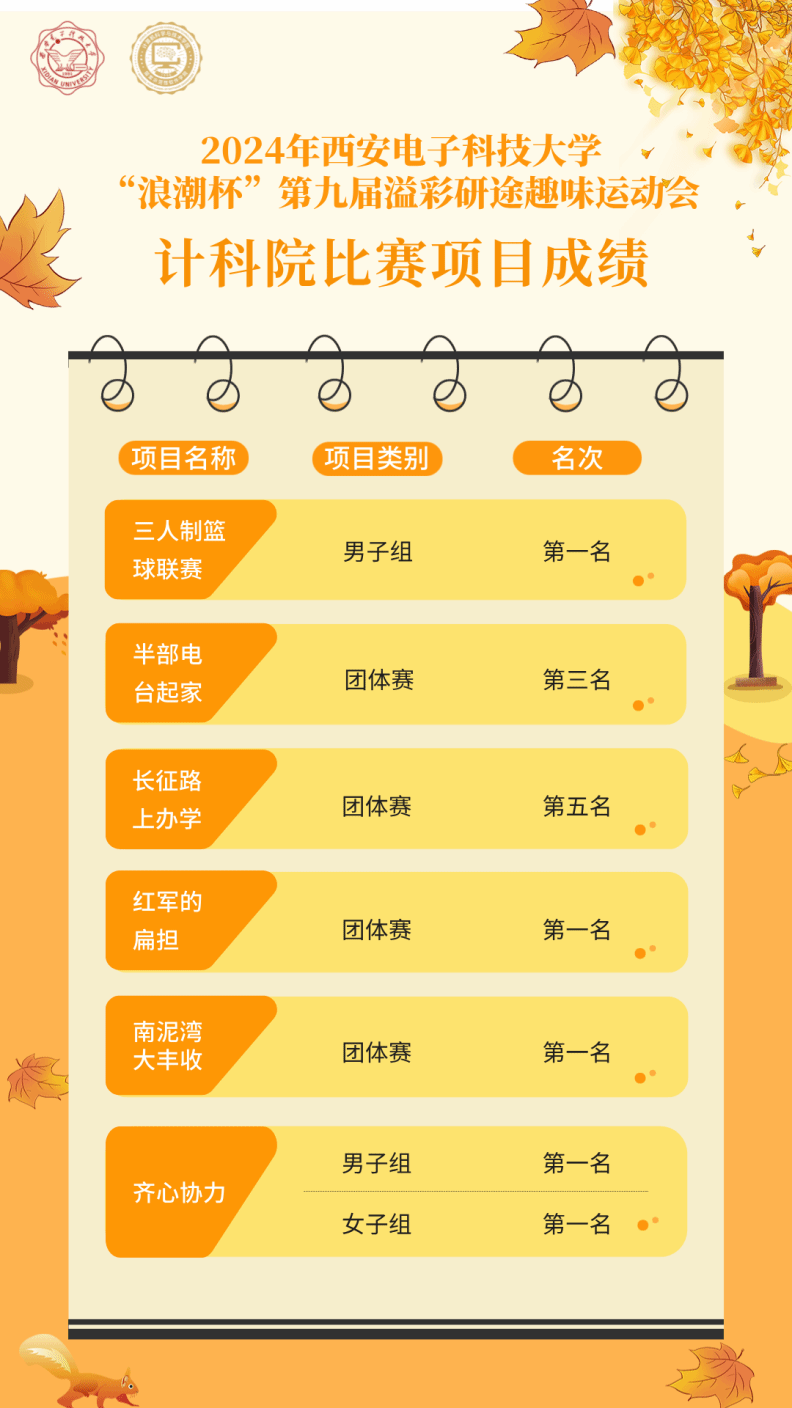 (通讯员 雷泽宇 寇大为)叶黄金满地,终南秋意浓。10月20日,“浪潮杯”2024年beat365官方网站第九届研究生趣味运动会在南校区如期举行。学院提前谋划,精心组织。师生团结努力,奋勇拼搏,最终以112分总成绩拔得头筹,继计科院2023年获得该项赛事第一名之后,再次取得“团体总分第一名”好成绩!