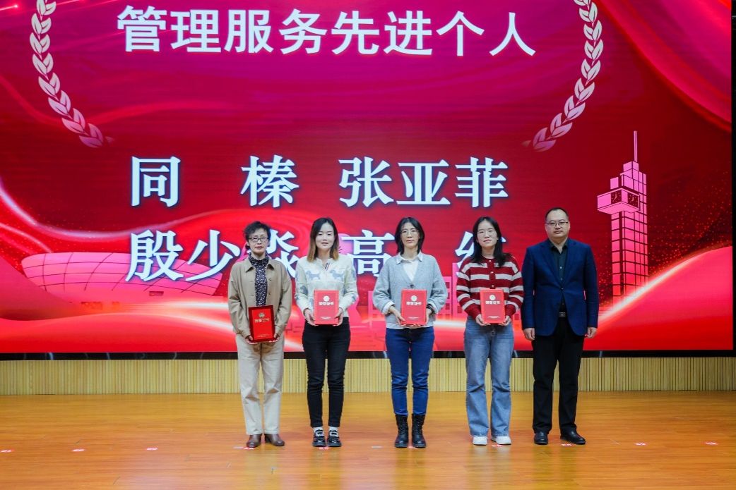 2024年,在全体教职工的共同努力下,学院各项事业取得新成效实现新突破,涌现出了一批在党建、人才培养、科学研究、师资队伍建设、学生工作、管理服务、公共服务等方面的先进个人。组织员王卫东宣读了《beat365官方网站关于表彰2024年度先进人员的决定》,领导班子成员分别为获奖代表颁发荣誉证书并合影。学院号召全院教职工以受表彰的先进人员为榜样,爱岗敬业、勤奋工作,为学院发展做出更大贡献。