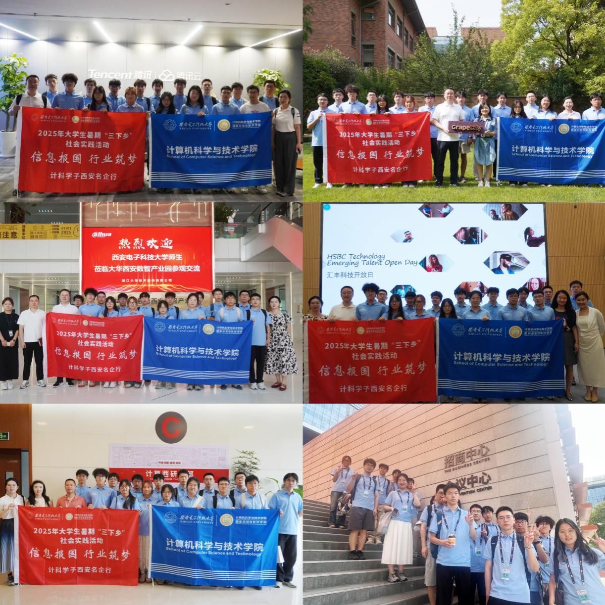 在大华股份的数智产业园中,队员们在公司技术专家的带领下了解了计算机、数字智能技术持续赋能交通、医疗、安全、旅游等与人们生活密切相关的应用场景,通过智能安防与生态监测等跨界应用案例,队员们深刻地感受到信息技术在社会治理中的多元价值以及科技“让社会更安全,让生活更智能”社会使命;在“汇丰科技开放日”,队员们现场聆听了公司多位行业精英的专题报告,专家们通过 AI 算法如何提升银行业务效率的案例讲解,让队员们直观理解 “技术服务人民” 的实践路径,并在开放日现场与西安交通大学等兄弟高校学子加强了互动交流;在华为西安研究所,计算产品线资深人力资源经理带领实践队员走进全球技术支持中心,详解对华为的全球科技布局网络以及西安研究所的业务范畴,并针对实践队队员们阐释了企业对不同学历人才的能力期待。与企业的系列对话不仅让队员们亲历行业前沿的脉动,更帮助实践队员洞悉信息强国战略下人才的核心素养,引导队员们形成 “把个人发展融入产业振兴” 的职业导向。