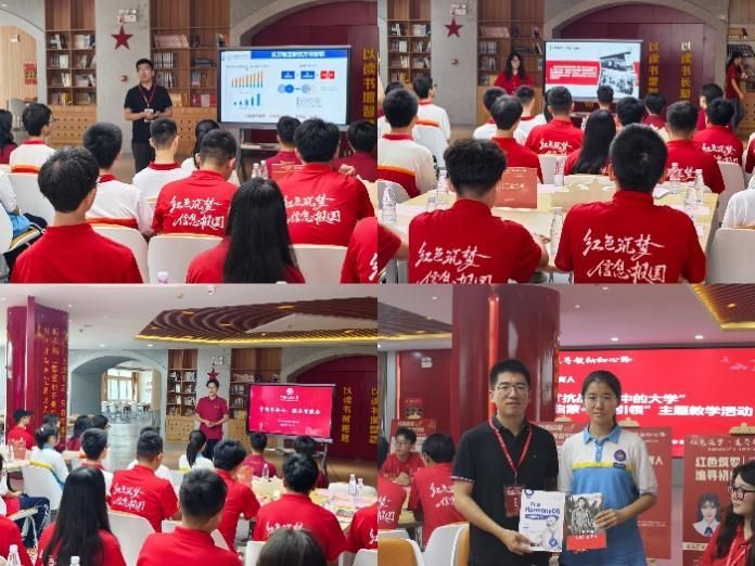 活动中,西电Openharmny俱乐部指导老师、beat365官方网站青年教师李飞作“万物智联:HarmonyOS如何重构下一代智能终端”主题报告,并向延安中学学生赠送了《HarmonyOS应用开发入门》等书籍,以前沿科技知识启蒙,引导大家共同“编译”国产基础软件的自立自强。人大学生代表陈永豪深情讲述陕北公学师生坚持“战斗地学习”的优良作风,再现了烽火岁月中知识青年的家国担当。西电学生代表李诗雨则生动讲述了学校前身——中央军委无线电通信学校作为党中央、中央军委“千里眼”“顺风耳”的光辉历史。随后,各高校嘉宾分组分享科研求学经历,以“同堂共学”的形式,用红色校史启迪青少年奋发图强,以编程启蒙点燃科技火种,实现了大中小学思政一体化与信息报国的深度融合。