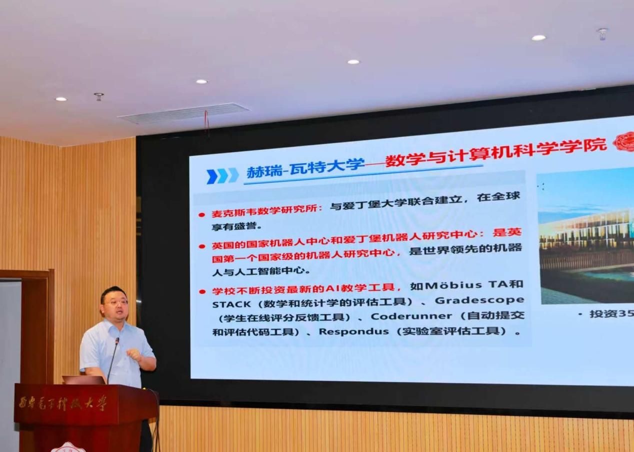 在数据科学与大数据技术专业(中英班)2025级新生家长见面会上,学院分管国际化工作的副院长李瑞教授详细介绍了中外合作办学的相关情况。他首先介绍了合作办学的英方单位赫瑞·瓦特大学的基本概况,随后就本专业的特色课程设置、中外联合管理模式、“3+1”特色培养方案详细介绍了中外合作办学项目的优势特色,展示了学院对首届中英班学生的高度重视与着力培养。
