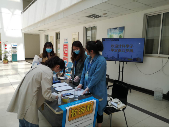 最后,学院工作组一行专程到南校区东门学生返校入口,向现场负责入校登记、引导、检测、消毒等工作的书院负责人与工作人员,了解学生进入校园的具体流程与返校进度,确认了学院已返校学生的相关信息。