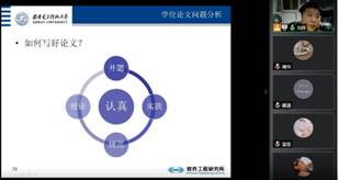 在随后的自由提问环节中,同学们与刘伟副教授展开了积极热烈的讨论。从论文内容的选择与组织方式、软件工程中系统模型的绘制、系统测试内容的撰写方式以及测试结果的展示方式、论文的排版布局、中英文文献撰写方式等方面进行了深入交流。原本定于九点半结束的主题报告,一再延长到了十点半,同学们这才意犹未尽地离开了线上课堂。