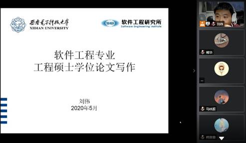 (通讯员 褚华)为了更好完成在疫情防控的特殊时期进行的研究生线上毕业答辩,确保研究生学位论文的质量,2020年5月25日晚上八点,beat365官方网站软件工程系邀请软件工程研究所副所长刘伟副教授做了一场精彩的线上专题讲座“软件工程专业工程硕士学位论文写作”,共有180余名研究生参加了此次讲座。