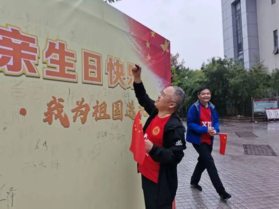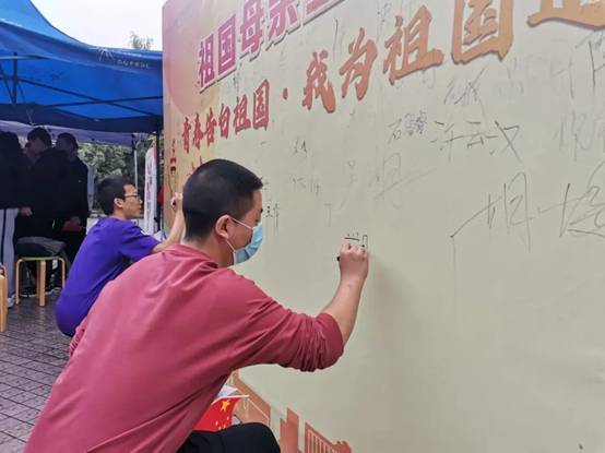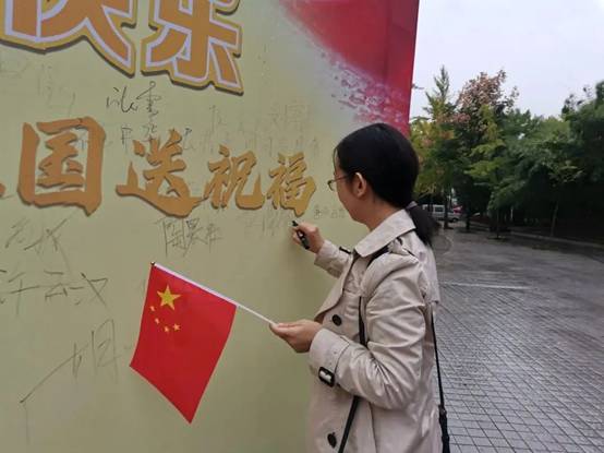 “祖国母亲,生日快乐!”“祝愿祖国越来越好!”“我的祖国,爱你一万年”……在“青春告白祖国”的签名墙上,同学们写下自己对伟大祖国繁荣昌盛,富强美好的祝愿,以青春之名,深情告白祖国。期间,学院领导与老师们来到活动现场,也纷纷在祝福墙上签名,并与现场同学合影,师生同框,共同为庆祝新中国成立71周年献上最美祝福。
