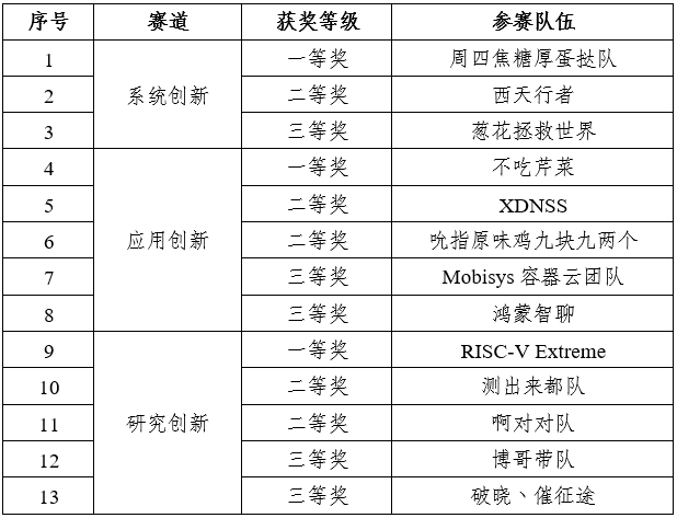 根据“中国数谷・华为杯”第二届中国研究生操作系统开源创新大赛校内赛工作安排,现将校内赛成绩予以公示,公示期为即日起三天。若有异议,请在公示期内通过电话(029-81891030)或邮件(cxdsjky@xidian.edu.cn)向校内赛组委会反馈。