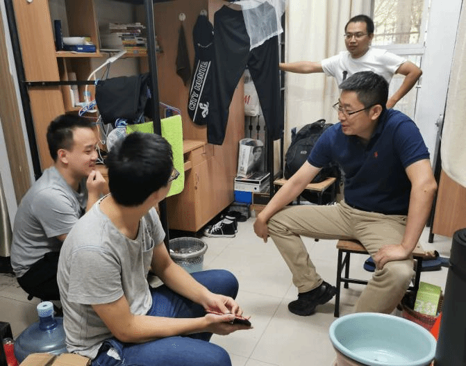 在7号楼209宿舍,崔江涛询问学生在刚刚结束的选课中是否存在困难,张天浩同学首先反映了选课模块中一些不明确的课程,例如“交流强化”与培养方案的要求不一致,其他几位同学反映了课程漏选等问题,崔江涛一一答复。在101宿舍,崔院长询问了学生在住宿生活方面的情况,以及防疫工作落实情况。走访过程中,大三学生普遍关注个人未来发展,崔江涛介绍了学院“以产出为导向”的培养理念,包括课程设置、竞赛指导等的多方面教学计划。他说,2018级是第一届书院模式,由学院和书院共同育人,18级同学的发展为其他后续年级提供了范本,学院将根据学生的需求,在“一生一课表”的情况下全力为同学们提供各类个性化的指导方案与发展机会。有同学提出对程序设计相关编程竞赛了解不够,万波老师进行了详细解答,并与同学进行了深入交流。