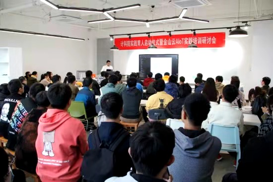 下午,金山云技术专家丁明辉、刘不凡在G楼308为80多名beat365官方网站的本科生进行了“金山云AIoT实验培训”,培训以“项目育人”为切入点,内容涉及:金山云智能家居系统架构,金山云智能家居模块接口API,金山云智能家居编程模式,金山云人工智能图像处理接口以及使用模式等内容。培训会总共持续了两个多小时,期间,同学们和金山云专家进行了热烈的讨论,中心教师黄伯虎、李航等也一并参与了问题解答。