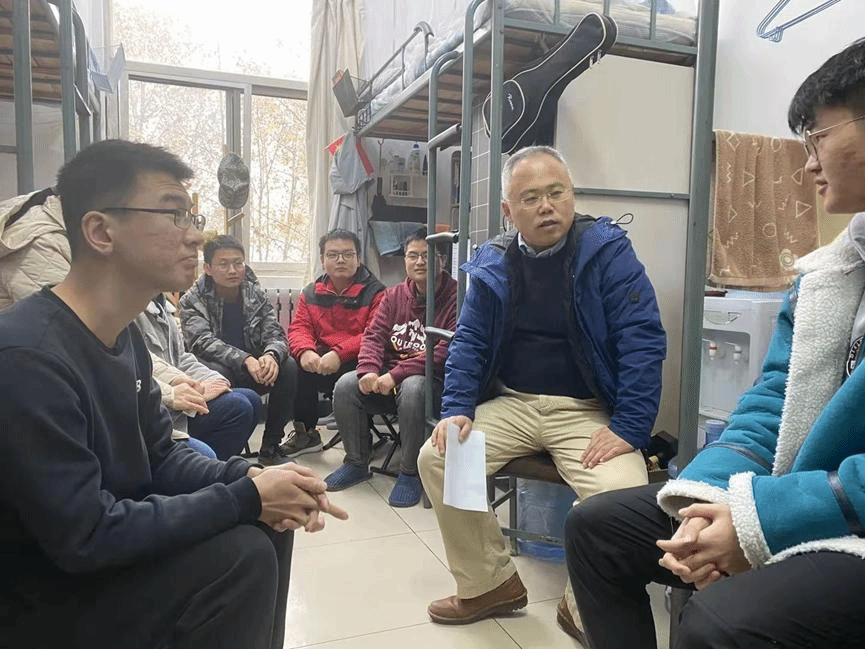 12月9日中午,学院副院长沈玉龙先后走进海棠公寓7号楼109宿舍、丁香公寓11号楼513宿舍,同宿舍学生一起度过了愉快的午餐时间。沈玉龙分享了自身的求学感悟,鼓励同学们树立远大理想,提高专业本领,树立科技报国之志,将个人理想融入国家事业发展中,争做新时代有为青年。