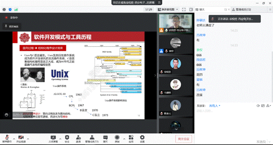 1月3日下午,徐悦甡副教授带来了《计算机软件开发模式、工具与标准发展历程》,由袁权老师主持报告。徐老师从软件开发模式与工具起源讲起,为同学们详细梳理了各个年代的软件开发发展脉络,将软件开发的艰辛历程一路娓娓道来,之后又讲解了软件产业机遇与软件开发标准,为同学们展示了软件工程逐步发展壮大的壮阔图景。最后,徐老师也提供了同学们一个初探科研的项目机会,为同学们打开学术的另一扇窗。