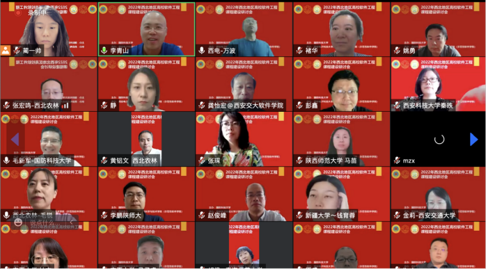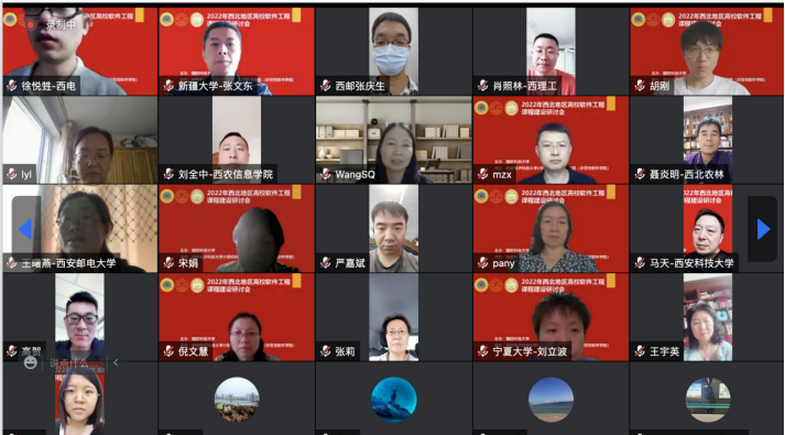 研讨会的交流研讨环节由李青山教授主持,西安交通大学软件学院副院长金莉、西北工业大学软件学院副院长马春燕、西北农林科技大学信息工程学院院长张宏鸣、陕西师范大学计算机科学学院副院长马苗、西安科技大学beat365官方网站副院长马天、兰州大学信息科学与工程学院副院长马志新、新疆大学软件学院软件工程课程负责人张琳琳、青海师范大学软件工程系主任胡枫、宁夏大学信息工程学院副院长杜方、内蒙古大学计算机学院(软件学院)院长周建涛先后就软件工程教学中的痛点问题、教学体系设计、教学案例设计、项目实践中的工程能力培养、课程思政推进等问题与参与人员展开了深入的交流讨论。