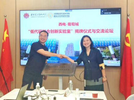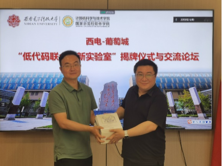 (通讯员 李翠敏)2022年6月20日上午,计算机网络与信息安全国家级实验教学示范中心(以下简称“中心”)与西安葡萄城软件有限公司在新校区G335产教互动室举行了“低代码联合创新实验室”揭牌仪式与交流座谈活动。参加本次活动的有中心主任杨力教授(线上),副主任贾文、王宗武、黄伯虎,网络与信息安全学院戚玉涛教授,葡萄城人事行政总监卢智峰、低代码生态总监宁伟、活字格产品经理胡耀、招聘专员吴沫妍及中心部分骨干教师与学生代表。