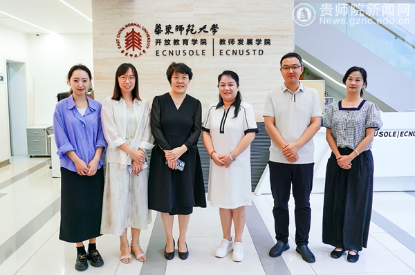 与华东师范大学开放教育学院、教师发展学院院长闫寒冰(左三)等合影留念