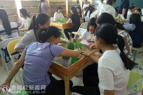 同学在体验沙盘游戏