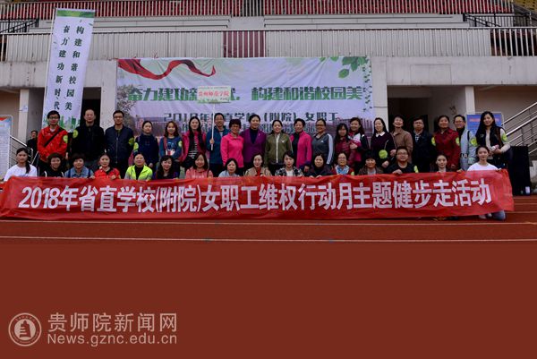 本网讯 阳光正好,微风不燥。3月27日下午,由省教育工会主办、贵州财经大学承办的“奋力建功新时代,构建和谐校园美”2018年省直学校(附院)女职工维权行动主题健步走活动,在贵州财经大学花溪校区体育场举行,best365工会组织四十余名教职工参加了此次活动。