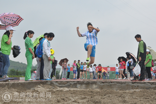 与此同时跳远比赛也在火热进行。跳远比赛强手如林,经过激烈的比拼,女子乙组比赛中来自体育学院13级1班的甘文双以4米93的优异综合成绩勇夺第一。在男子乙组比赛中来自13级3班的蔡平以6米53的优异成绩,力压群雄,勇夺冠军。蔡平是一个非常具有爆发力的选手,叫喊声中充满力量,顶住巨大压力,最终在第三跳中凭借6米53的完美表现,锁定冠军,技惊全场。大家也都为他的精彩表现所折服。