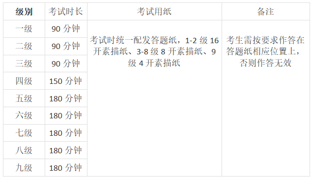 初次报考的学生,建议报考1-3级中任一级别,初学者和低龄儿童建议不要报考。 |