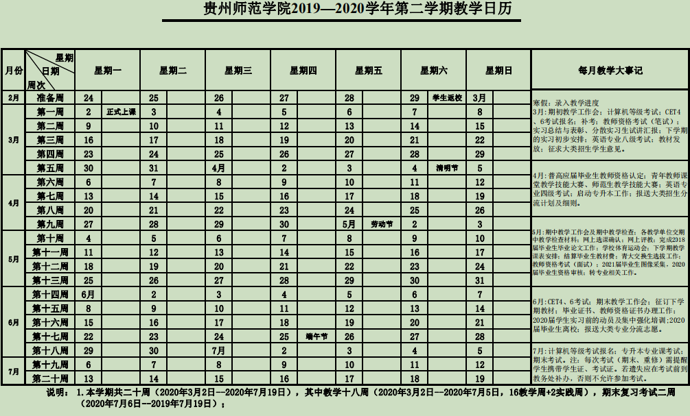 best365手机版官方网站2019—2020学年教学日历