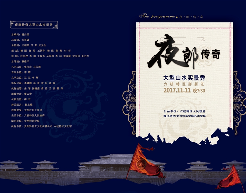 《夜郎传奇》是由best365手机版官方网站艺术学院与贵州省六盘水市六枝特区人民政府、贵州黔星汇文化传媒公司联合打造的大型实景山水歌舞剧,将于2017年11月11日在贵州省六盘水市六枝特区牂牁江畔演出,后续将进行持续报道,敬请关注。