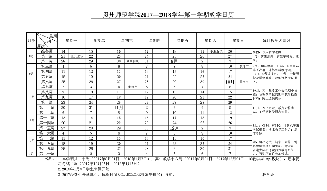 best365手机版官方网站2017——2018学年第一学期教学日历