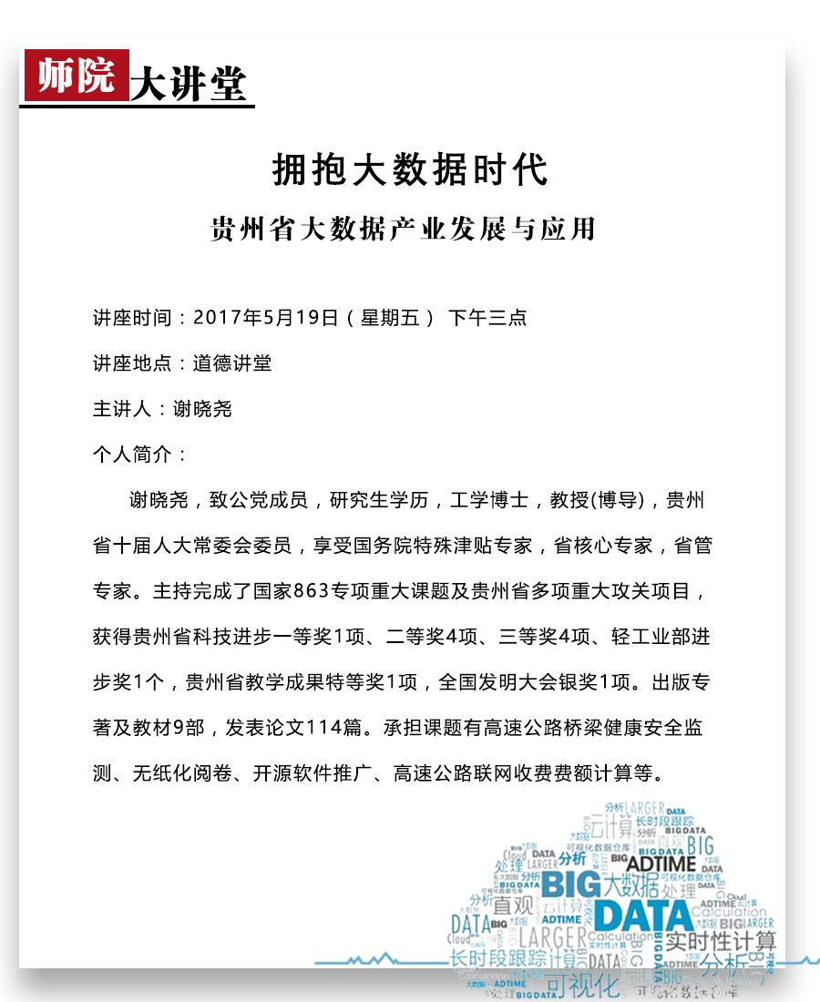 师院大讲堂:拥抱大数据时代—贵州省大数据产业发展与应用