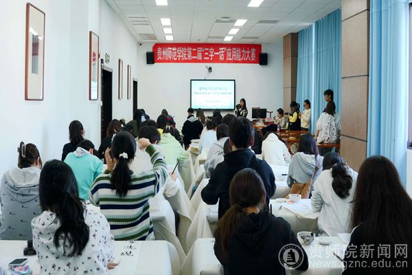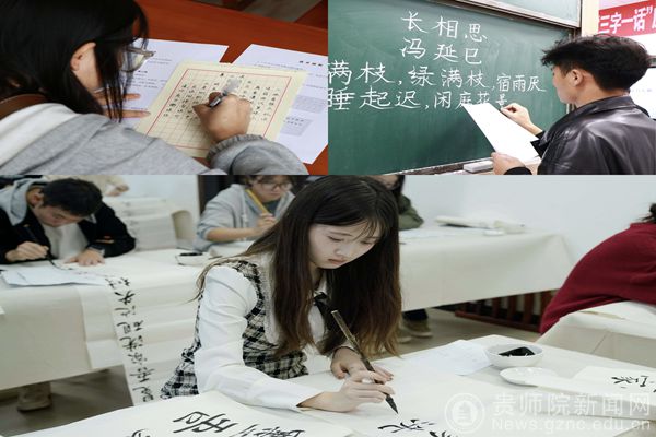 大赛在学校综合实训楼5楼的专业教室拉开帷幕,来自各年级、各学科的师范生们在硬笔字、粉笔字、毛笔字、普通话四个赛区进行激烈角逐。