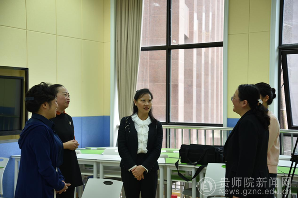 校党委委员、副校长邹晓青和评委沟通交流