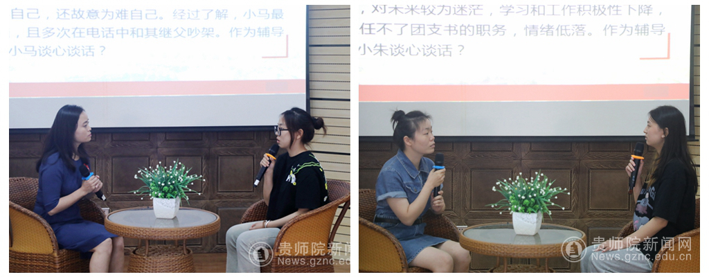 此次赛事共41名专职辅导员参加由学生工作部统一组织的基础知识考试(笔试),经过初赛比拼,有14位辅导员晋级。案例研讨环节,选手在赛前抽取小组、AB角签位,提前分别抽取1道案例。比赛以轮流问答的方式开展,由AB选手围绕案例共同辨析原因、研讨对策、总结规律,集中体现了参赛选手分析研判和解决实际问题能力,扎实的实践工作能力和良好的精神风貌;谈心谈话环节通过选手与助演学生两人组队,随机抽取一个案例,围绕事例进行角色扮演。在这一环节中,选手直面助演学生,针对他们提出的生活及学习、成长、心理等方面的疑惑,积极应对,作答直击灵魂深处,体现了辅导员对待青年朋友的亲和力和出色的沟通能力。