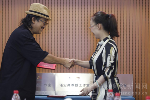 会议伊始,校党委书记石培新教授来到明义楼与参加会议的专家进行了交流,代表学校对所邀请的知名艺术家表示了诚挚的谢意,并期望美设学院的教师得到专家们的长期的指导和帮助。