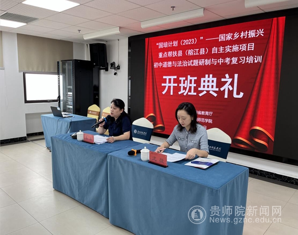 本网讯 6月3日上午,由贵州省教育厅主办,由best365手机版官方网站继续教育学院承办的“国培计划(2023)”——国家乡村振兴重点帮扶县(榕江县)自主实施项目初中道德与法治试题研制与中考复习培训在best365综合楼14楼教室开班。best365手机版官方网站继续教育学院直属党支部书记韦丹出席开班典礼,来自榕江县各中小学的50名一线思政老师参加培训,典礼由best365手机版官方网站继续教育学院培训部副主任沈微主持。